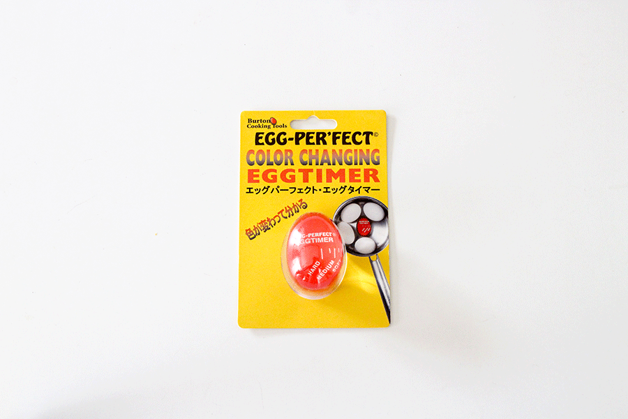 ゆで卵を作るときにゆで加減が一目でわかるタイマーです。卵と一緒に水の状態から茹で上げると、タイマーの色が変わります。特に半熟玉子を作りたいときにとても重宝します。