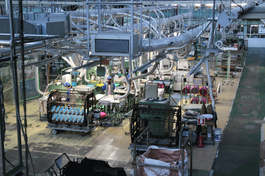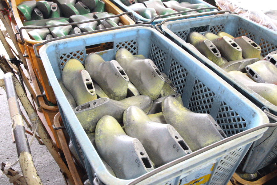 今回は、靴に使うゴムや生地の加工から靴型作り、靴本体の製造現場を見学させてもらいました。