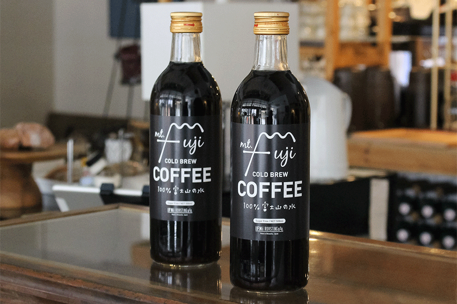 お店では、パックになった水出しコーヒーを2種類と、富士山の天然水で抽出した瓶のタイプをご用意しています。パックの水出しコーヒーは、寝る前に1リットルの浸けておくだけで、朝には美味しいアイスコーヒーが飲めちゃいます。