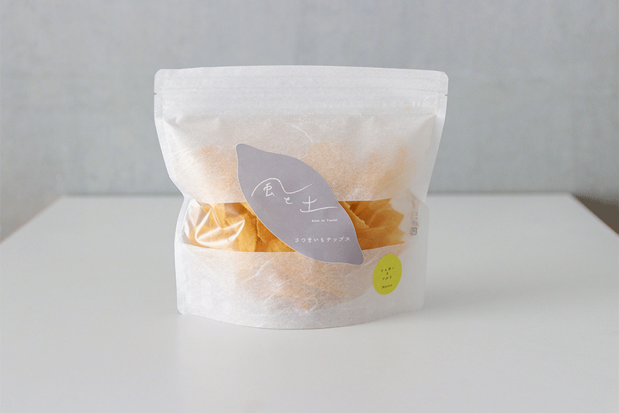 紅はるかは、甜菜糖と美浜の塩をまぶし、ほんのり甘じょっぱい口当たり。紫芋は、美浜の塩とブラックペッパーをまぶし、ピリッとした辛さで仕上げていて、どちらも特徴があるチップス。