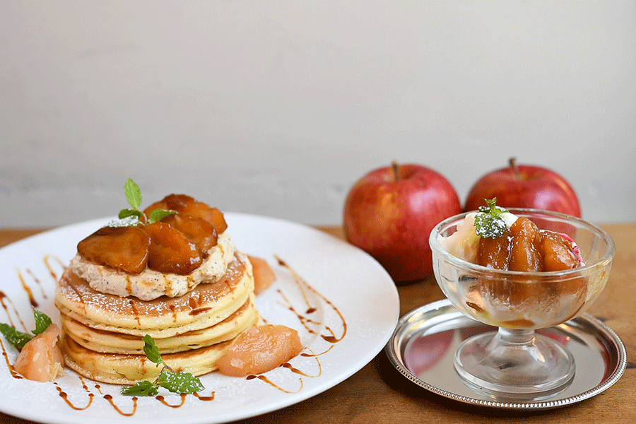 当店に併設しているカフェハイファミリアでは、フェルセンバウムさんのリンゴを使った季節限定のスイーツも食べれますよ!