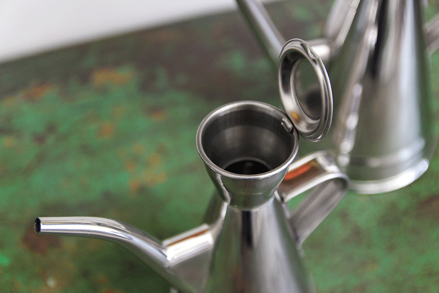ポルトガルで作られた、フォルムが特徴的なステンレス製のポット。地中海料理に欠かせないオリーブオイルを入れるために作られたモノです。