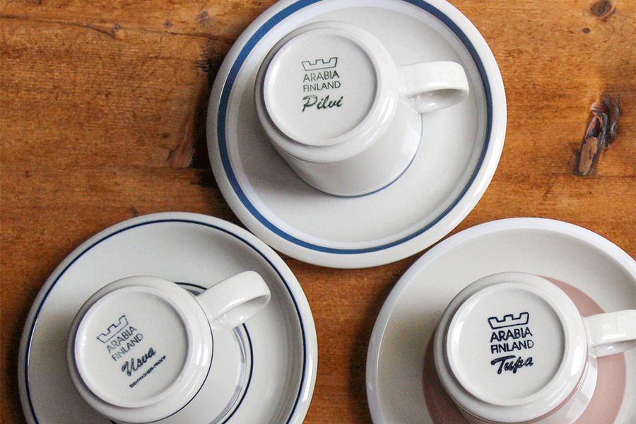 北欧ヴィンテージ食器のご紹介です。今から30~40年程前に作られたARABIA社のカップ&ソーサーたち。
