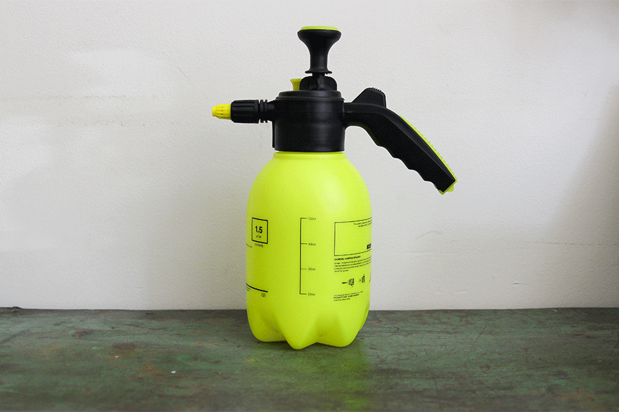 ポンプで空気を圧縮して、水を細かな霧状にして散布できるスプレー。ポンプ部分を上下して圧力をかけたら、グリップ部分にあるボタンを押すと水が出ます。