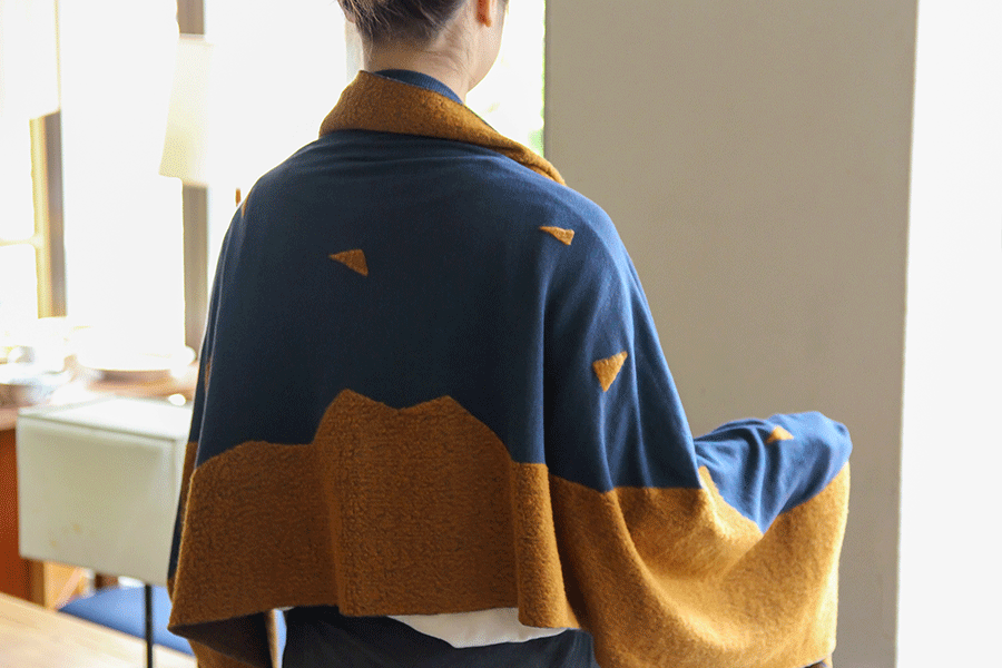 肩からかけてストールとして、首にグルグル巻いてマフラーに。ブランケットとしても十分使えるサイズです。