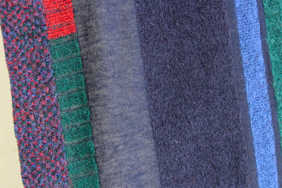 初めて見た時に、1番驚いたのがコットンとウールが混合した生地だということ。柄の部分によって自由自在に素材を変えて織ることができる技術は丸編み機と、ジャカード織機を両方持つメーカーの特殊な生産形態にあるそう。