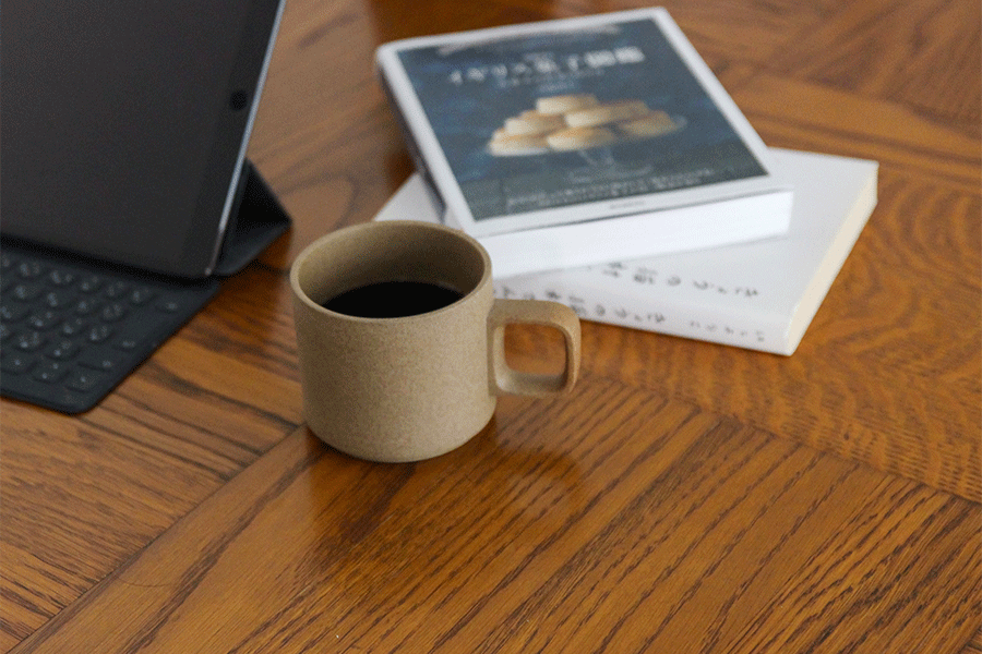 装飾性がなく、潔いすっきりとしたデザイン。そして、独特な質感が特徴です。また、計算されたサイズ感で、マグはサイズが違うモノ同士でもスタッキングすることが可能になっています。