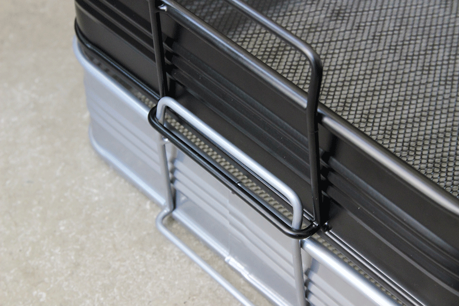 持ち手部分は、積み重ねると横ズレがしない仕様になっていて、最大で6段まで重ねることができます。