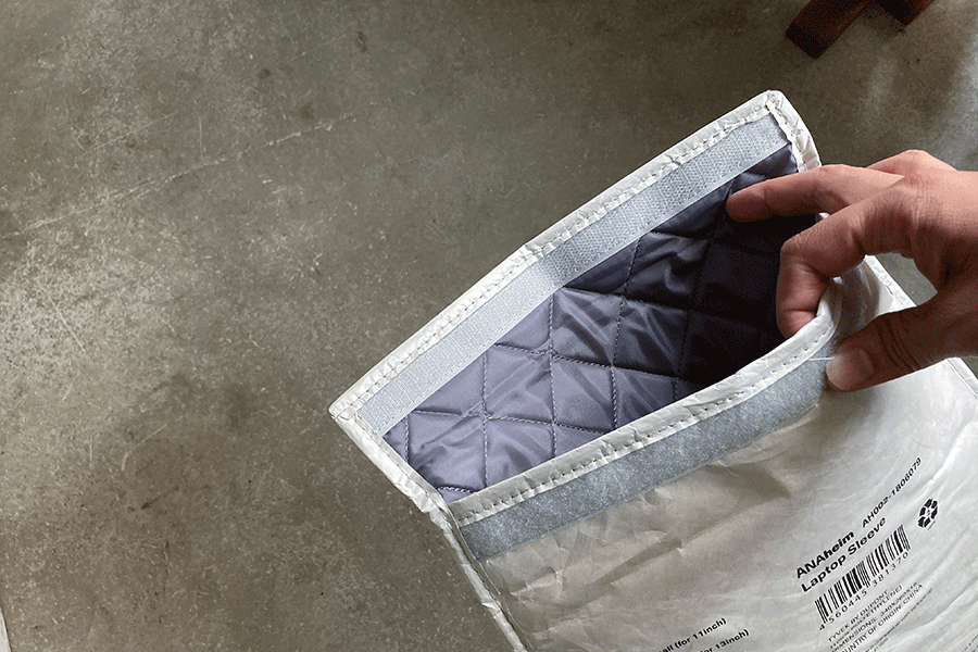 軽量で強度のある素材「Tyvek®(タイベック)」を使用したケース。使っていく内に、シワがついて味わいが出てきます。