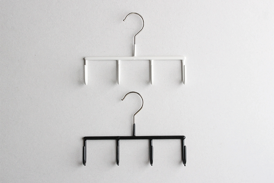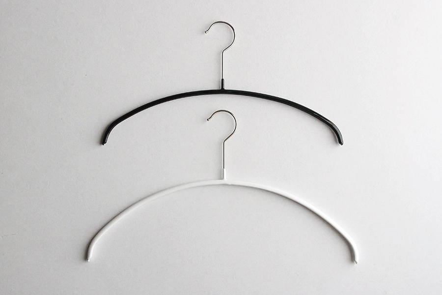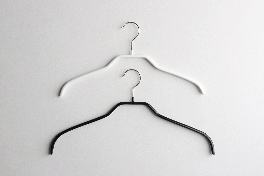 そして三つ目は、サイズや形状、カラーが豊富なところ。レディースやメンズ、トップスやボトムスなど使う人や掛けたい洋服によって使い分けることができます。maikaではブラックとホワイトの2色展開です。