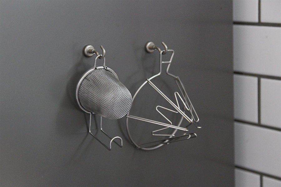 洗った後は、フックを引っ掛けて吊るしたり、持ち手を下にして置くことができるので、漉し部分が下に付くことなく乾かすことができます。