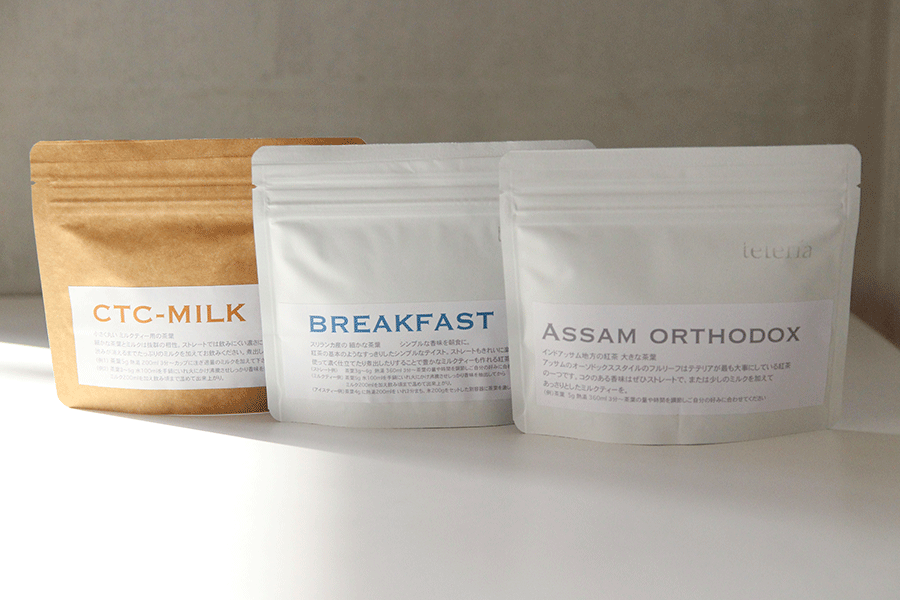 当店で展開するのは、アッサム オーソドックス、ブレックファースト、CTCミルクの3種類です。