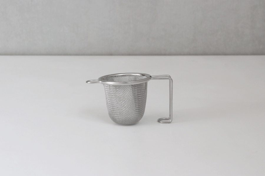 網の部分は、粗さが違う二重の網になっているので、細かな茶葉もしっかりとキャッチしてくれます。コの字型の持ち手は、カップの側面に引っかかり、安定して淹れられます。