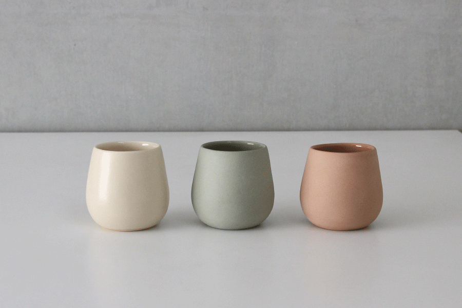 丸いフォルムが可愛らしい湯呑みは、約100mlくらいが入る小ぶりなサイズです。表面はマット、内側はツヤのある仕上がりになっています。毎朝の白湯やお茶、コーヒーなど。