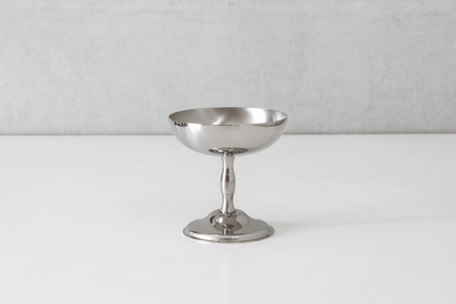 1967年にイタリアで創業の金属製品メーカー「Motta(モッタ)」が作るレストランやカフェで使われているアイスクリーム用のカップです。モッタは、ホテルやレストラン、カフェなどで使う業務用のステンレス製品を長く作っています。