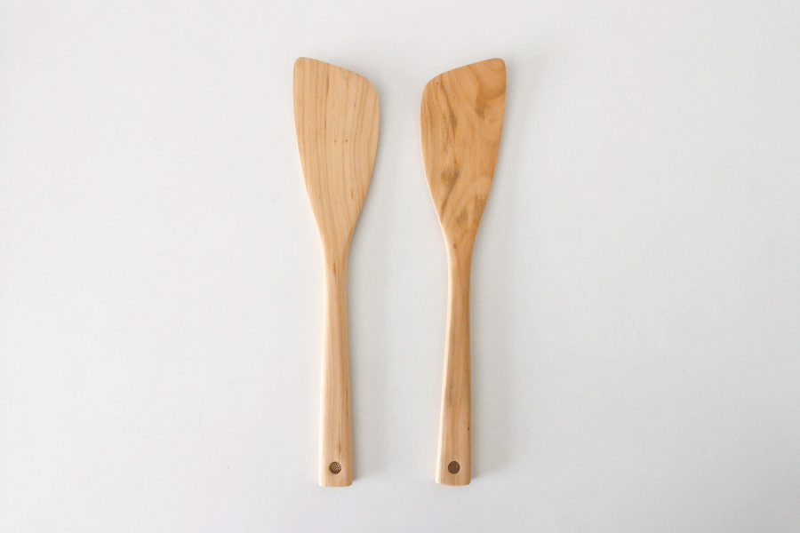 原材料は、広島県北部の地域から産出されるヤマザクラを主に使用しています。ヤマザクラは、程よい堅さと弾力があるので、調理器具の材料にも向いています。調理を重ねることで赤みが増して深い味わいになっていきま
