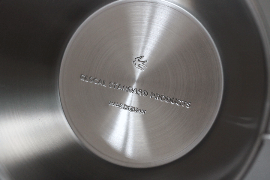 底面にはグローカルスタンダードプロダクツのロゴがエンボス加工されています。シェラカップの場合、レーザーで印字がされているモノが多い中で、あえてエンボス加工にしているところにこだわりを感じてます。