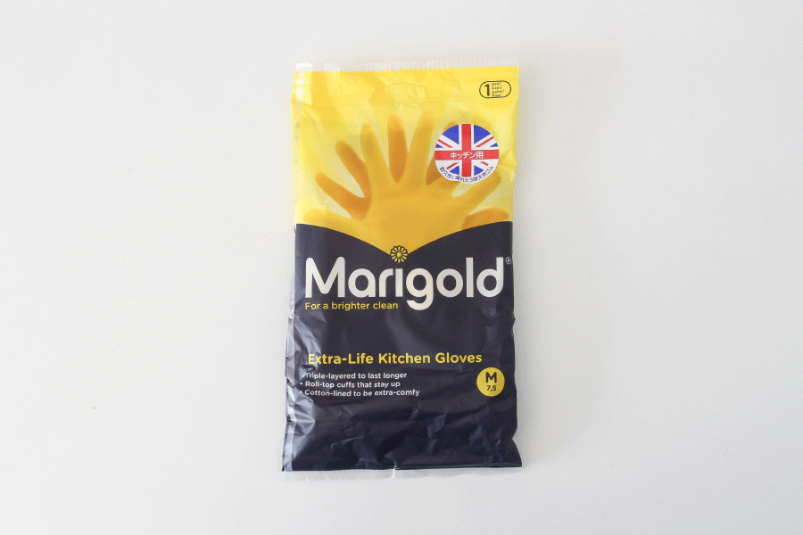1947年に世界で初めてゴム手袋の生産を始めたイギリスのブランドMarigold(マリーゴールド)。食品、医療、工業用などのグローブを長年に渡り、作っています。