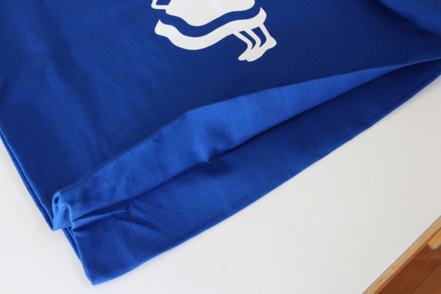 薄すぎず、厚すぎずの触り心地が柔らかいコットン地です。横と底部分には10cmずつのマチがついているのでたっぷりと荷物が入ります。
