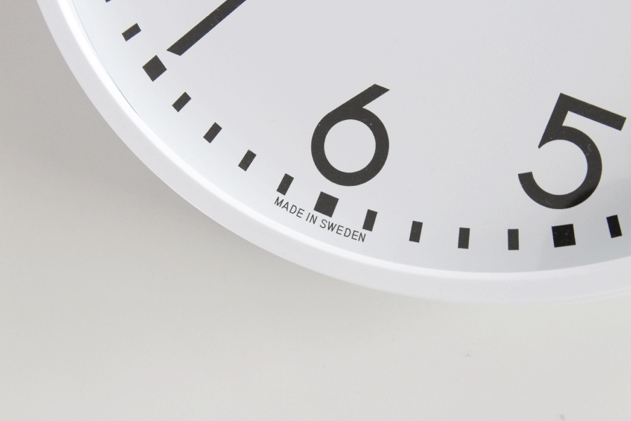 製造は海外生産に頼らずにスウェーデン国内で行われています。背面のムーブメントカバーがせり出しているので、壁に掛けると立体的に見えます。
