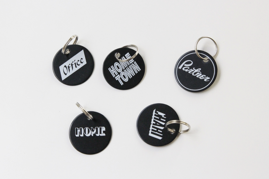 鍵を分類できるキーラベルです。家、会社、自転車、恋人、実家。これだけの種類があれば大体の人が分類できると思います。