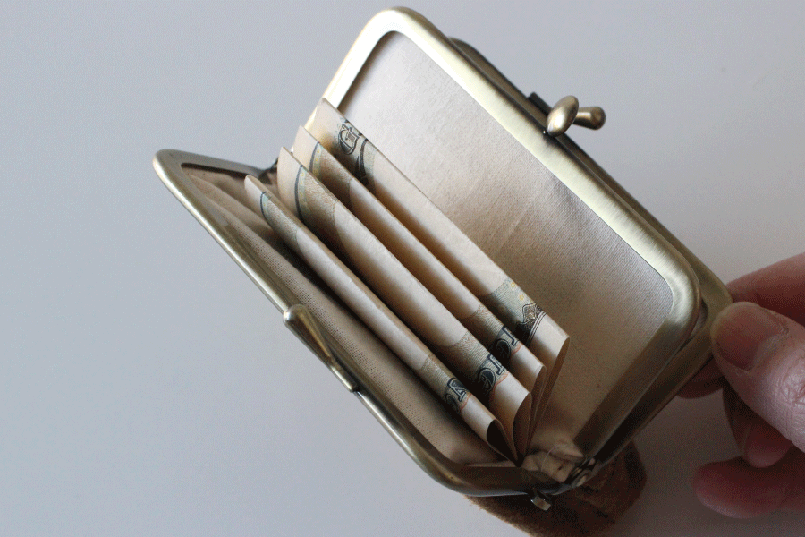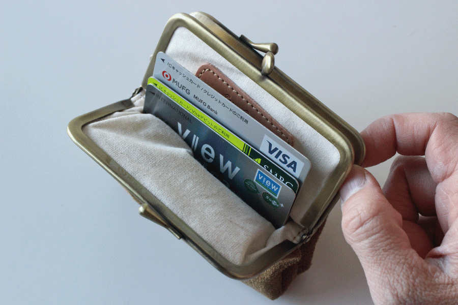 特長は、2口のポケット仕様となっていますので、お札と小銭、お札とカードなど仕分ける事ができて便利なところ。