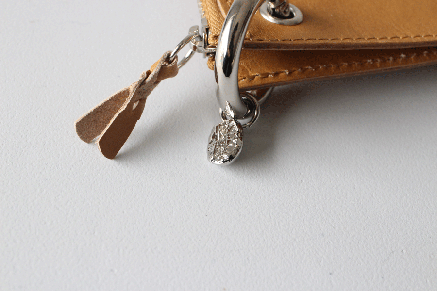 リング状のカラビナパーツで、すでに使っているにバッグに引っ掛けても。全て取り外してシンプルに財布として使っても。