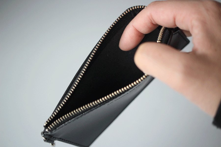 スマートで使い勝手の良い、L型ジップのマルチパース。