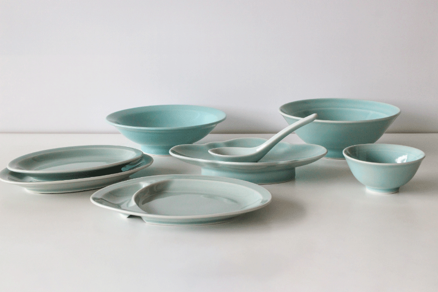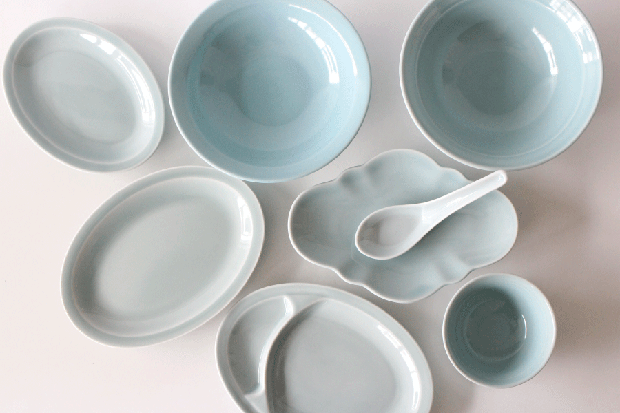 そんな町の中華料理屋さんでよく見かける青磁のシンプルがお皿たち。