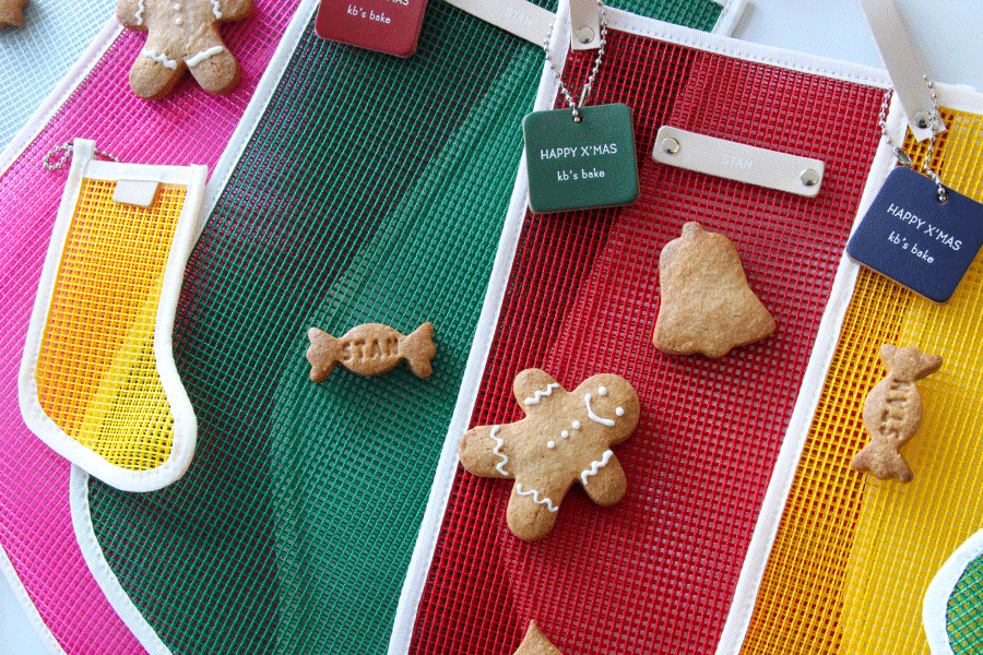 STANの「クリスマスソックス」に、kb’s bakeのジンジャークッキーを入れたコラボアイテムを作りました。