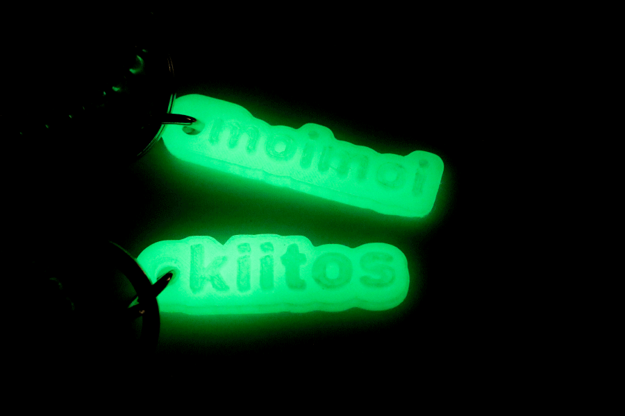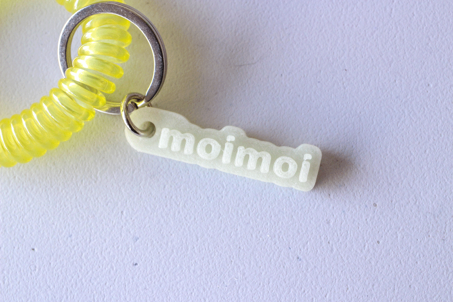 暗いところでひかる蓄光のチャームには、フィンランドの単語が刻印してあります。