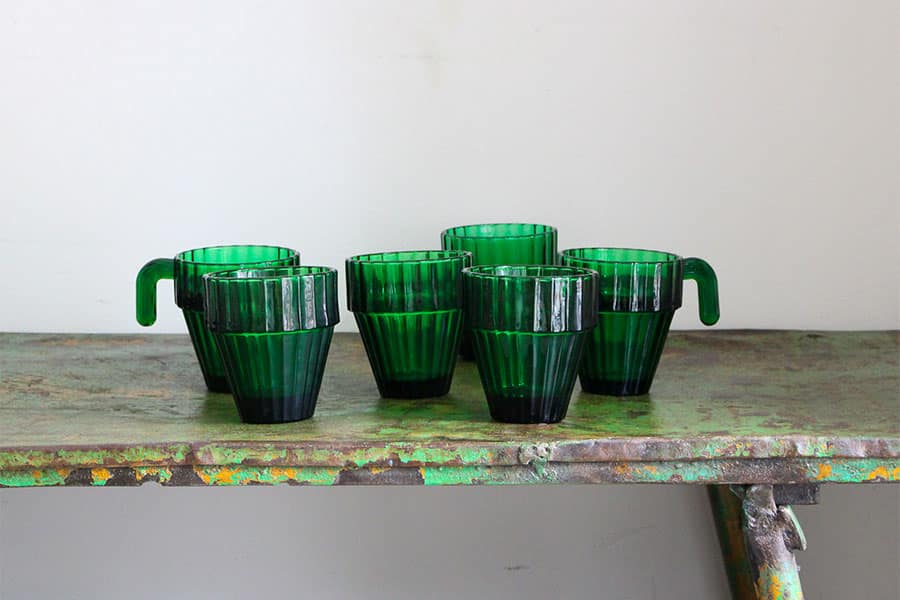 ハンドルつきのグラスが2個と、ハンドルなしが4個の計6個セットです。涼しげで夏のグラスに使えそうです。他にもグラスとしてだけではなく、サボテン植えたりしても良さそう。