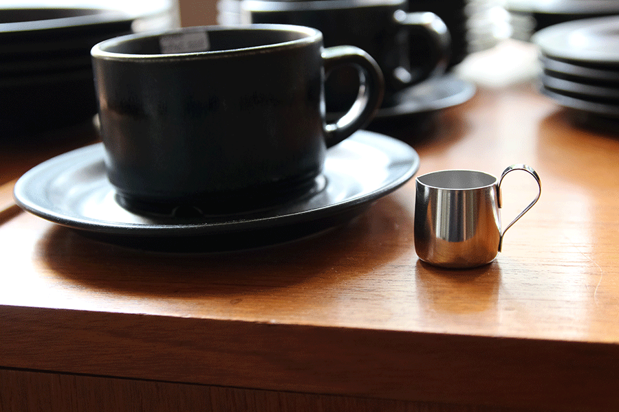 喫茶店などで見かける、海軍型ミルクピッチャー。なぜ海軍型なのかというと、揺れる船の上で使っても倒れないようにと、下が膨らんだ台形型していることが由来のようです。