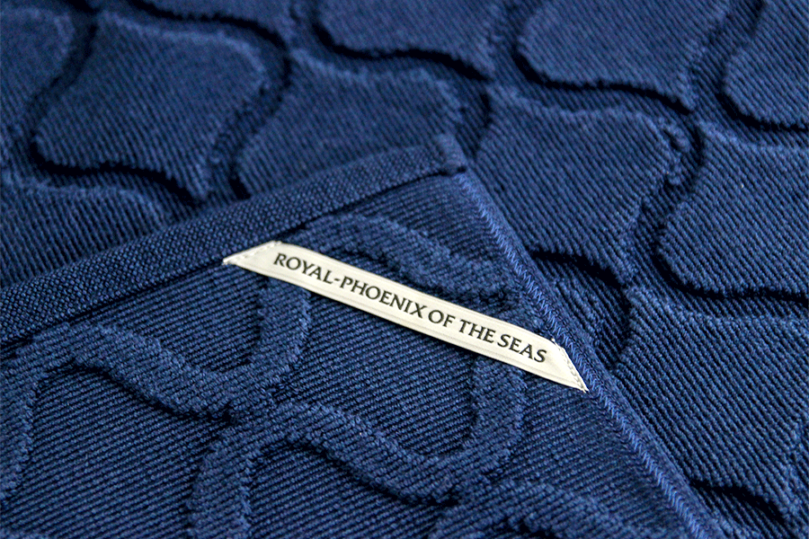 こちらは日本を代表するタオル産地、愛媛県今治市の老舗タオルメーカーが作り出す、ロイヤル-フェニックス オブ ザ シーズのバスマット。長年培った技術と最上級の糸を使用しているので、一般的なバスマットよりも心地よく滑らかな肌触り。そして、吸水性にも優れています。
