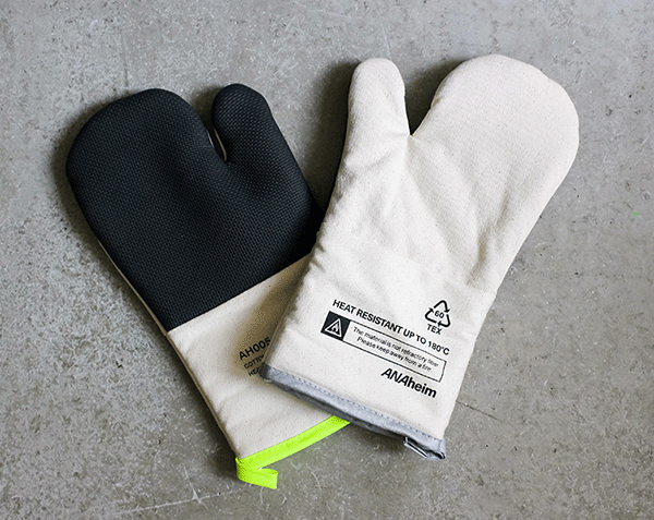 キャンバス地をベースにフチ部分にカラーのパイピングを施したオーブングローブ。アメリカの業務用グローブのようなデザインです。自宅はもちろんキャンプでの軍手代わりにも使えそうですね。 持ち手部分は合成ゴムになっており、耐熱1 […]